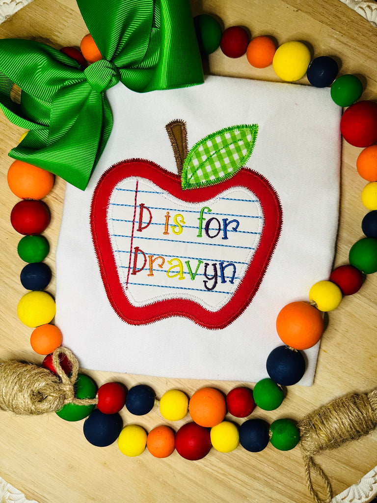 A is for Apple....add your personal touch by placing your child's name on their shirt for back to school pictures.